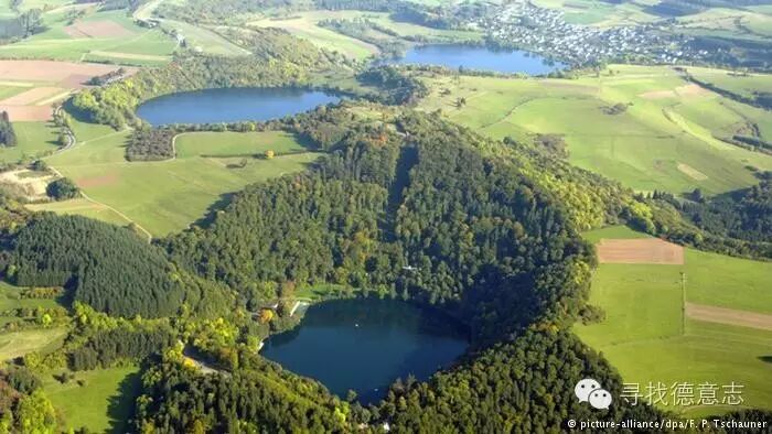 这些湖水湛蓝的圆形湖泊,也被称为埃菲尔山脉的眼睛,它们都是火山喷发后形成的。埃菲尔山区共有70多座这类火山口湖。平静的湖面下,岩浆仍在汹涌沸腾,这一点游客看过瓦伦波恩的喷泉之后就会坚信不疑。这眼间歇泉每隔半小时就会喷发一次,水柱高达三米。