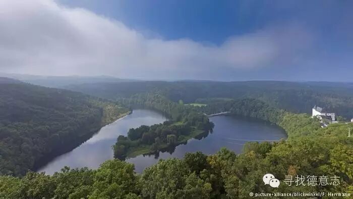 这座德国最大的水库是由萨尔河灌注的。65米高的水坝后面形成了一个长达28公里的峡湾地带。水库蓄水量高达两亿多立方米。库区内的游艇三日游等旅游项目。水库建于1930年,而附近的博格堡(画面右侧)则有四百多年的历史。